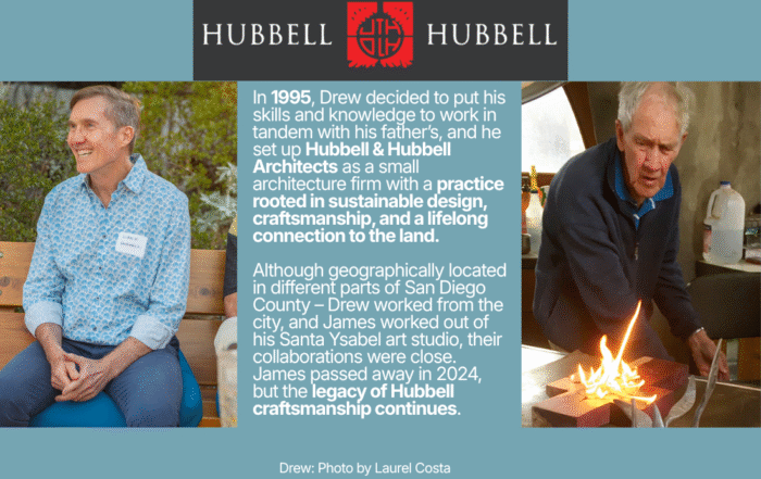 Since creating the firm in 1995 with my father, James Hubbell, a world-renowned artist deeply embedded in San Diego’s culture, we have built an established reputation for personally serving our clients and professionally applying our expertise to a wide spectrum of projects—from residential home design and remodeling to public facilities such as churches, zoos, parks, nature centers, and tribal centers.