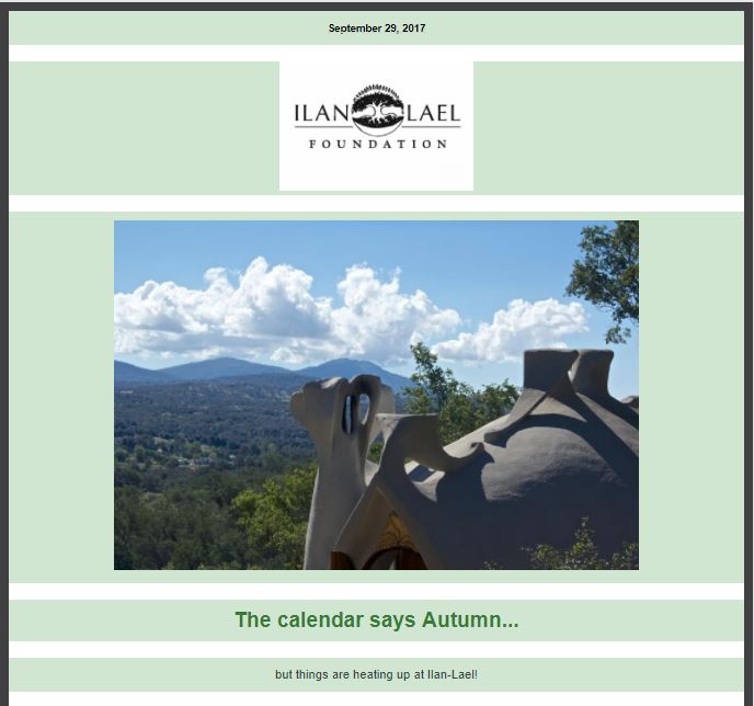 There are lots of exciting things happening at the Ilan-Lael Foundation this fall! Check them out above and visit the Ilan-Lael website (http://ilanlaelfoundation.org/) if you are interested in the October 21st tour, the stained glass workshop, a garden volunteer day, or Jim Hubbell’s art show at Santa Ysabel Gallery.