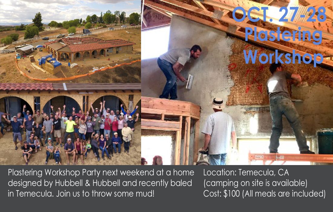 Join for a plastering workshop in Temecula the weekend of Oct 27-28! We will be plastering with Natural Hydraulic Lime; however, the skills you will learn will transfer to other plaster materials as well. There will be hands-on learning on both the scratch (first) coat and brown (second) coat. I will discuss the details of all three coats, including the finish coat and color in detail. Participants are asked to bring their own plastering tools (4″x12″ trowel with smooth edges and a plaster hawk).