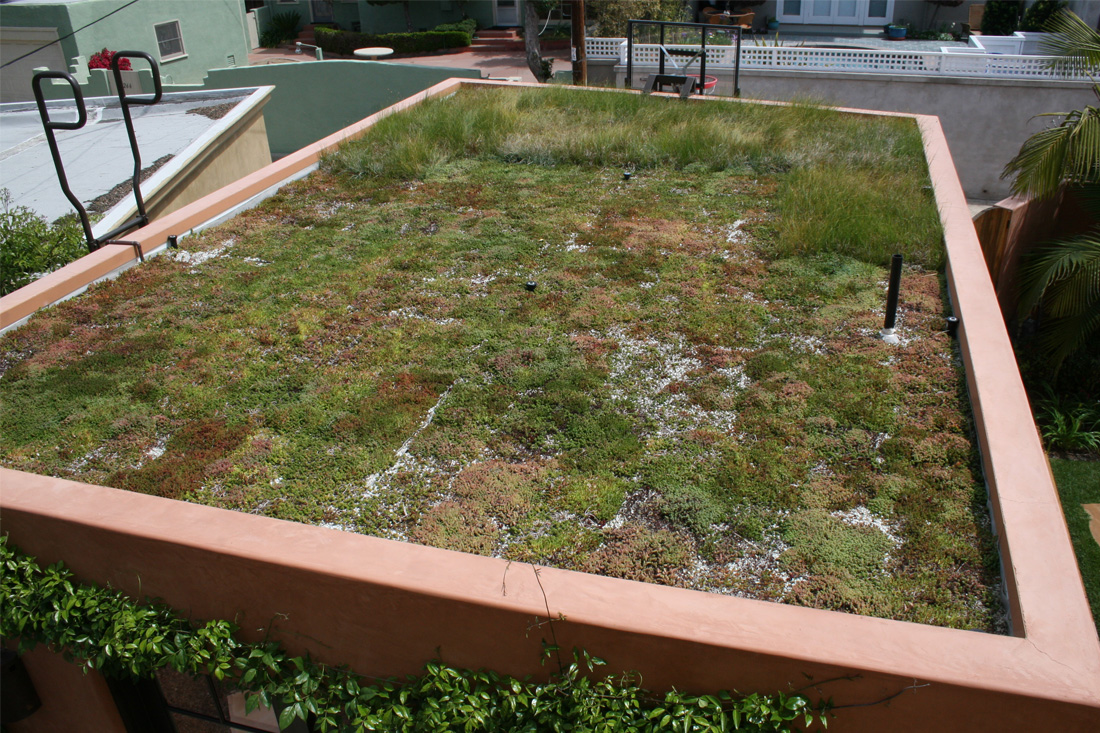 REDUCE STORMWATER RUNOFF. Water typically runs off roofs, then down the driveway and into the street picking up pollutants before it eventually reaches our local water ways. The plants on a green roof soak up rainwater preventing this contamination.