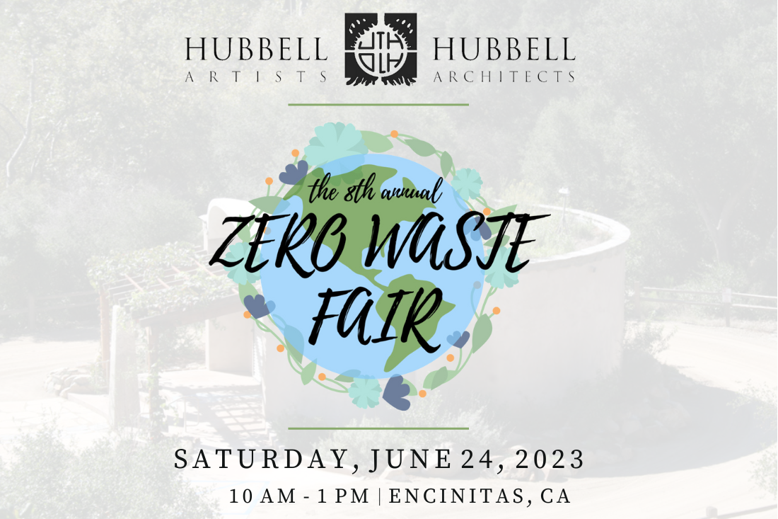 Hubbell and Hubbell will be hosting a booth at the 8th annual Zero Waste Fair. At the fair, we will be showcasing photos of our residential projects and will have information about the green building materials and sustainable building strategies that we use in all our designs. Attendees will be able to see physical samples of the green materials, ask us questions about sustainable building, and receive a list of Hubbell and Hubbell projects that they can visit around San Diego this summer. We are excited to attend alongside like-minded people and we hope to see you there!