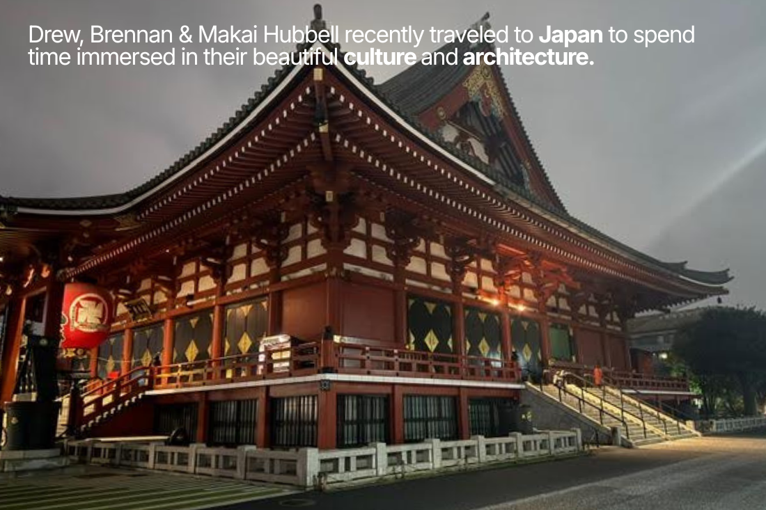 Drew, Brennan & Makai Hubbell recently traveled to Japan to spend time immersed in their beautiful culture and architecture. Drew & Brennan’s uncle, Bert Hubbell, lived in the foothills near Lake Yamanaka at the base of Mt. Fuji for 60 years with his wife Hiroko. Bert recently passed away very close to when Drew’s father, James, passed away in 2024. Prior to Bert’s passing, Drew’s sons, Dylan and Connor, visited Bert’s home, and afterwards Dylan wrote: