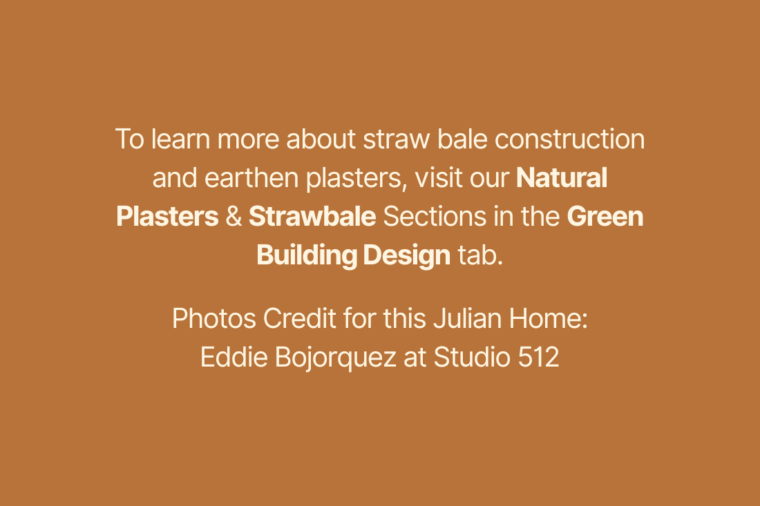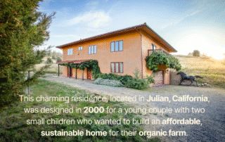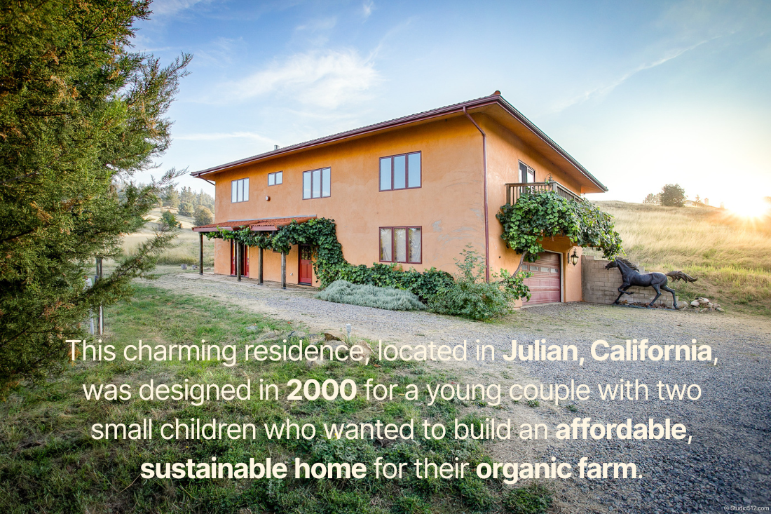 We recently obtained great photos by Eddie Bojorquez at Studio 512 of the first two-story straw bale home Hubbell & Hubbell designed. This charming residence, located in Julian, California, was designed in 2000 for a young couple with two small children who wanted to build an affordable, sustainable home for their organic farm. The property [...more]