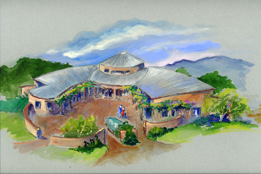 As the first permitted strawbale building to be constructed in center city San Diego, the Friends Center project was developed and designed as a showcase “green” building, a demonstration site for state-of-the-art environmentally sustainable building techniques, including strawbale construction, solar power, passive solar design, rainwater capture, and other energy-efficient components.