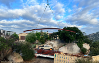 One of our organic and sustainable residential designs is taking shape in Escondido, California! The steel roof beams have just been installed and we are so excited to share some photos. The first photo shows the roof ridge beam being brought in by a crane. This beam has a radius as the entire [...more]