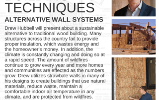 This Thursday Nov. 9th at 10 am PST, Drew Hubbell will be presenting in a live webinar hosted by Lorman Education Services. He will discuss his experience designing with strawbale walls, and the benefits of this sustainable alternative. We are happy to share a 50% discount code for the webinar. See the link and [...more]