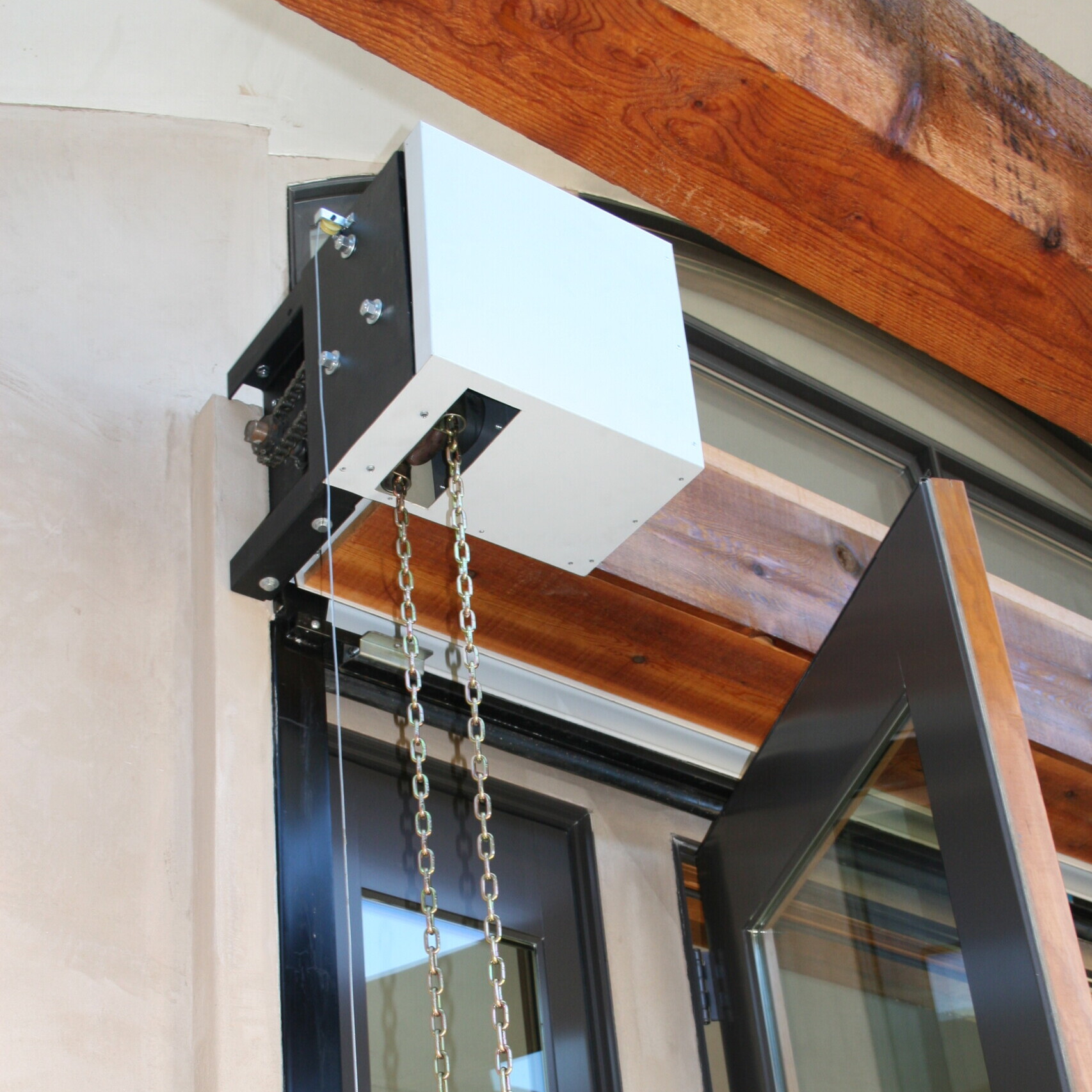 Photo 4: This zoomed in view shows the mechanism that lowers the fire shutters, showcasing the simple and effective design that allows for quick deployment when necessary.